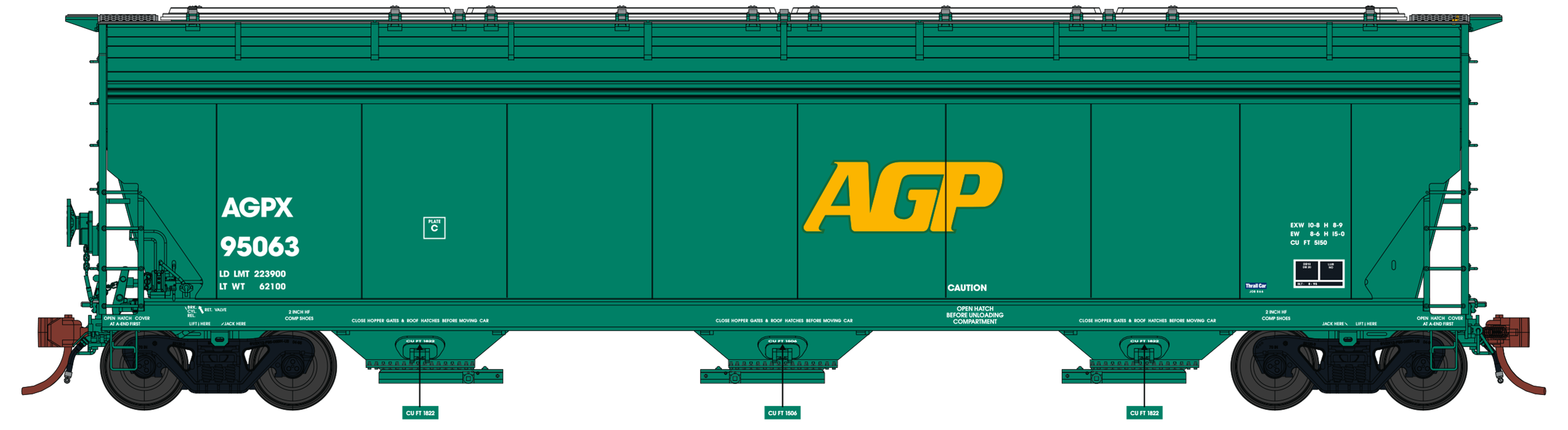 The Thrall 5150s were built between 1994 and 2001. They feature a couple of different phase variations including brake components, stirrups, roping equipment as well as outlet gates. The 5150s were known for being in grain service, but ventured into other commodities including dry chemicals and sugar. With over 8000 built, these cars continue to be a staple in manifest trains and can be found all throughout North America.